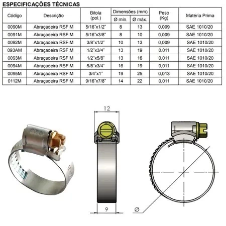 - Tipo: Abraçadeira Rsf (rosca sem fim)