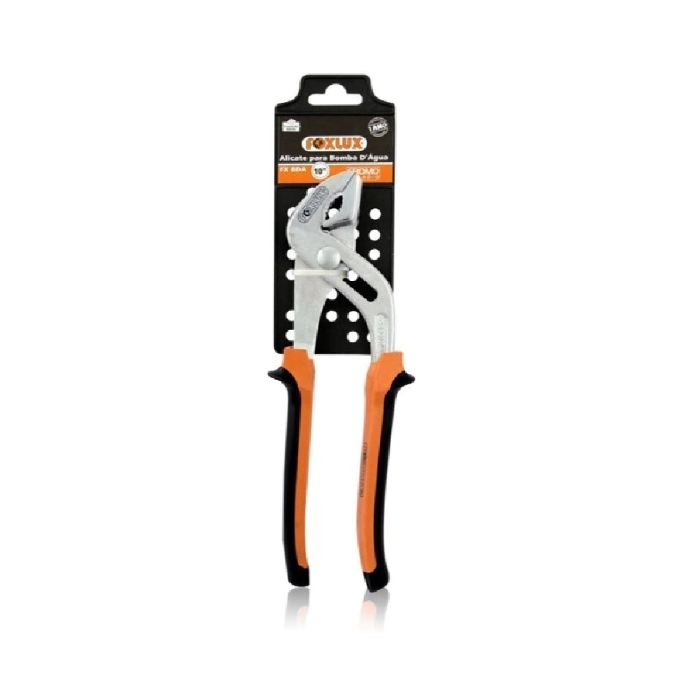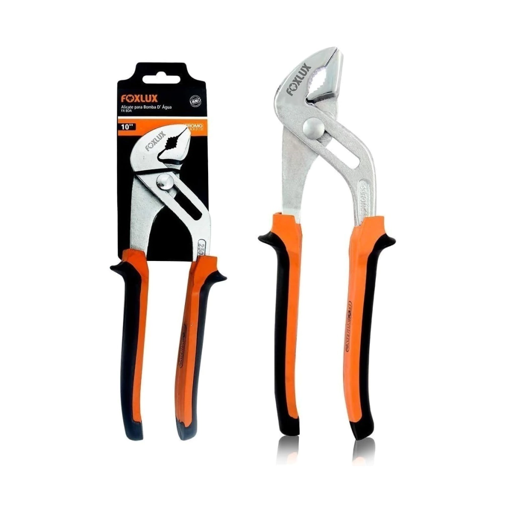 O Alicate Bomba D'água 10 Foxlux é especialmente projetado para trabalhos com bombas d'água, facilitando a fixação e aperto seguro de tubos e conexões em sistemas hidráulicos. Essencial para profissionais da área hidráulica, encanadores e uso doméstico em reparos e instalações.