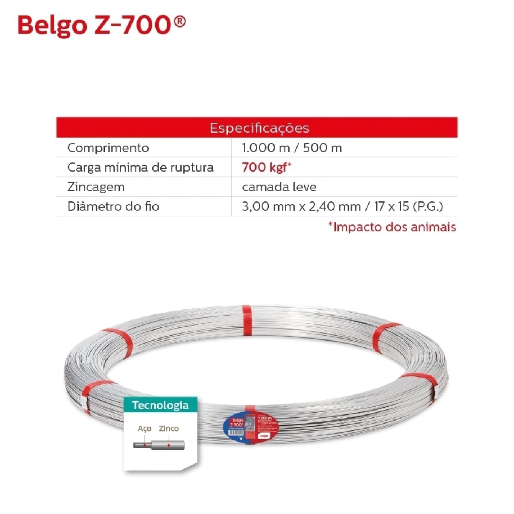 Desenvolvido para cercar gado de corte e leite, o Arame Ovalado Liso Z-700 garante a segurança e proteção do seu rebanho. Sua alta resistência e durabilidade fazem dele a escolha ideal para manter seu gado bem acomodado, além de ser fácil de instalar em diferentes tipos de terrenos.