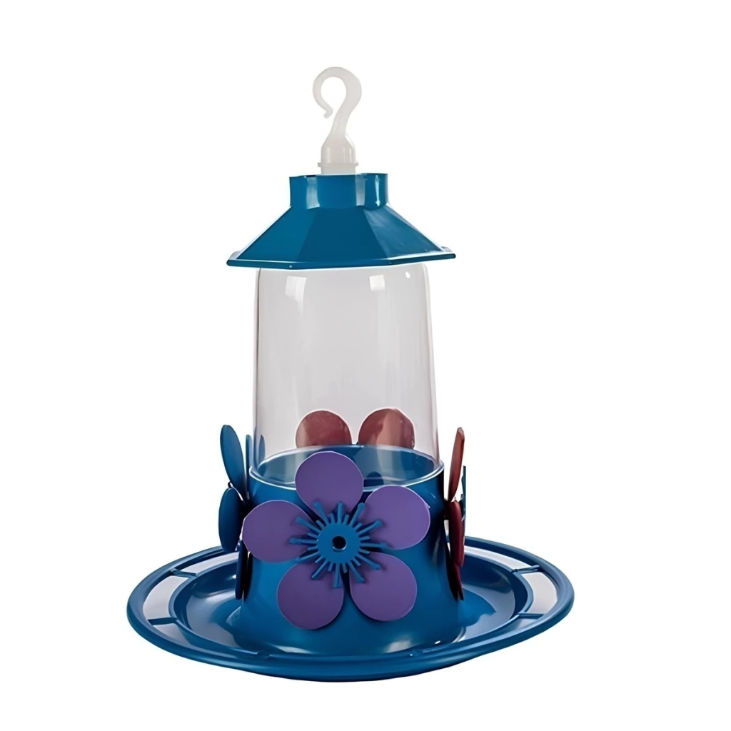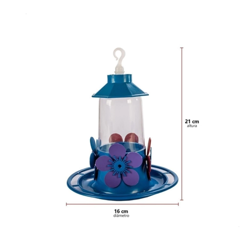 Serve para oferecer néctar de forma adequada a beija-flores e outras aves nectarívoras. O poleiro proporciona descanso durante a alimentação, e o chapéu protege o alimento contra insetos e impurezas.