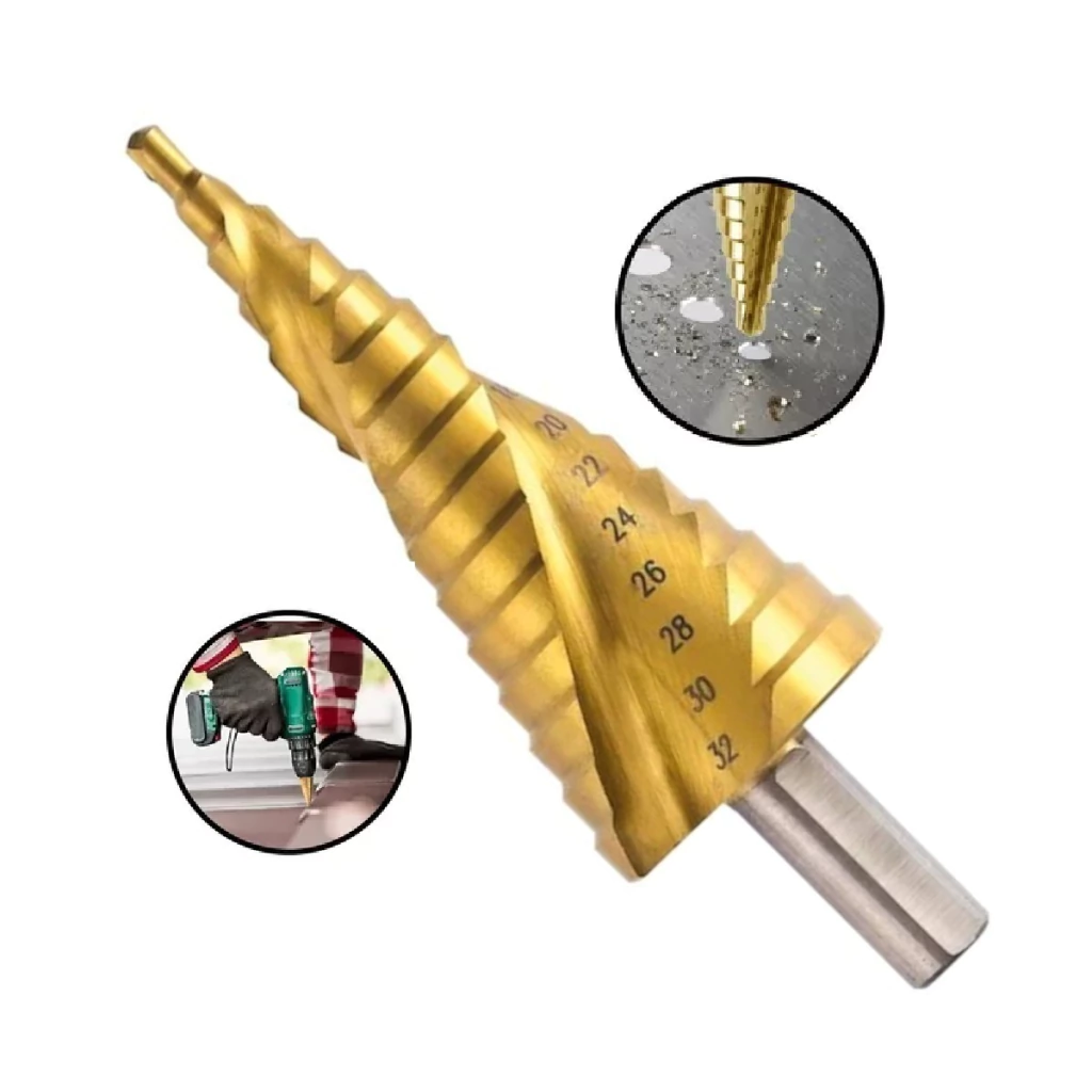 Para que Serve: Esta broca escalonada é utilizada para perfuração precisa em chapas finas de metal, madeira, plástico e outros materiais. É especialmente útil para trabalhos que exigem furos de diferentes diâmetros, proporcionando praticidade e eficiência.