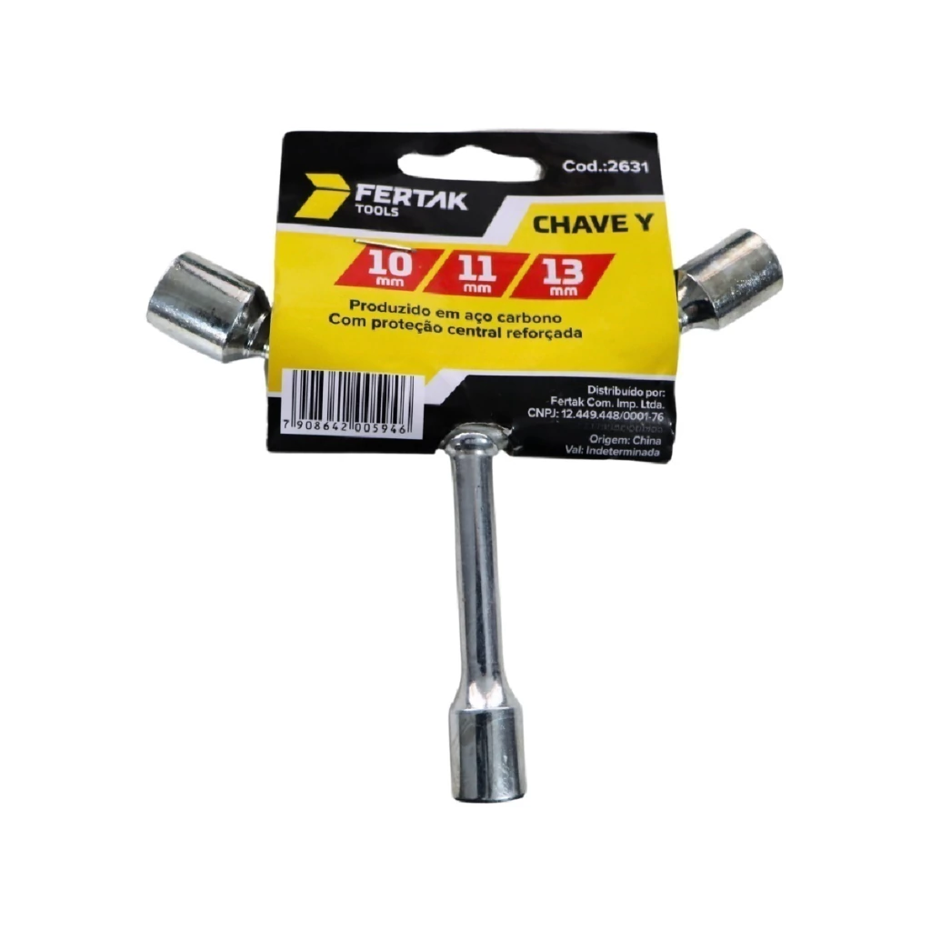 Essa chave é projetada para trabalhar com parafusos e porcas de 10 mm, 11 mm e 13 mm, sendo uma ferramenta extremamente versátil para diversos tipos de reparos e manutenção. Seu formato especial em "Y" permite alcançar áreas de difícil acesso, tornando-a essencial para diversos tipos de tarefas.