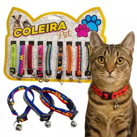 Coleira para gatos confeccionada em fita elástica resistente, disponível em cores e estampas variadas, acompanhada de guizo para ajudar a localizar o felino com facilidade. Possui fecho curvo que garante maior conforto e segurança, além de ser ajustável para se adaptar ao pescocinho do seu gato.