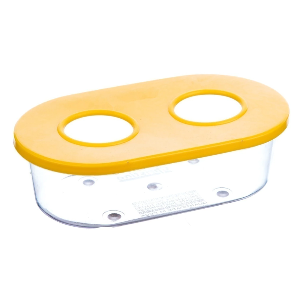 Este comedouro é utilizado para alimentar pássaros, proporcionando dois espaços separados para ração ou outros tipos de alimentos, permitindo maior organização e praticidade na alimentação diária.