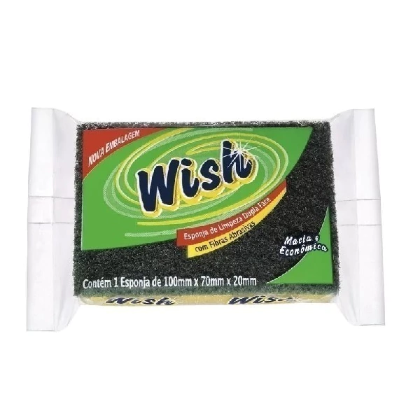A Esponja Dupla Face Wish é composta por uma camada de espuma macia em um lado e uma camada de material abrasivo no outro lado, garantindo a qualidade e durabilidade que você merece.