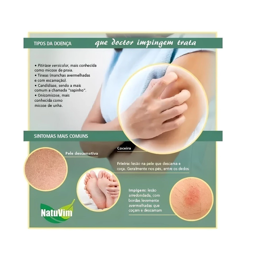 Impingem Doctor é uma loção eficaz no combate a impingem, frieiras e micoses. Sua fórmula foi desenvolvida para atuar diretamente na área afetada, proporcionando alívio e auxiliando na regeneração da pele.