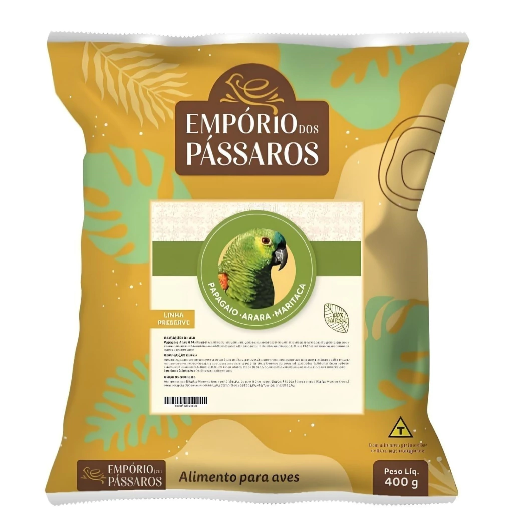 a mistura papagaio arara e maritaca preserve 400g é um alimento completo e balanceado, desenvolvido para suprir as necessidades nutricionais de aves de grande porte. sua fórmula contém ingredientes selecionados para promover saúde, energia e bem-estar, além de auxiliar na manutenção das penas e fortalecer o sistema imunológico.