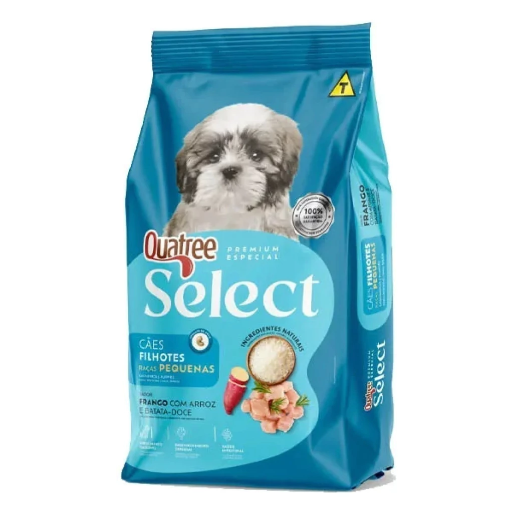A Quatree Select Filhotes Raças Pequenas Frango, Arroz & Batata Doce é um alimento Premium Especial formulado para atender todas as necessidades nutricionais dos cães filhotes de pequeno porte. Sua composição combina frango, como fonte de proteína de alta qualidade, arroz, que auxilia na digestão, e batata-doce, que fornece energia de forma equilibrada.