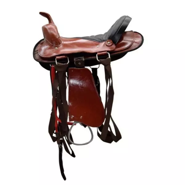 Tamanho da sela: 15". Possui fino acabamento confeccionada em couro de búfalo tratado com óleo de mocotó. Estrutura fabricada em madeira tratada contra fungos e enervada em couro crú. Assento forrado em vaqueta, acolchoada com espuma de alta densidade. Argolas e fivelas em ferro ao banho de níquel (cromada). Indicado para passeio podendo ser usado na maioria das raças. Acompanha: par de estribos liga leve e cabeçada, rédea, loro com regulagem, 2 látegos e contra látego com regulagem em fita de seda.