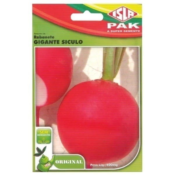 O produto é composto por sementes de Rabanete Gigante Siculo de alta qualidade, selecionadas para garantir uma germinação eficiente. As sementes são acondicionadas em embalagem hermética que preserva sua integridade e viabilidade.
